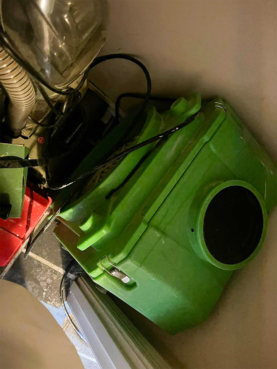 First and foremost, quick containment steps were put in place to stop the mold spores from spreading further. We kept the damaged area separate by using advanced methods, such as negative pressure containment on the closet door, which reduced the chance of cross-contamination.